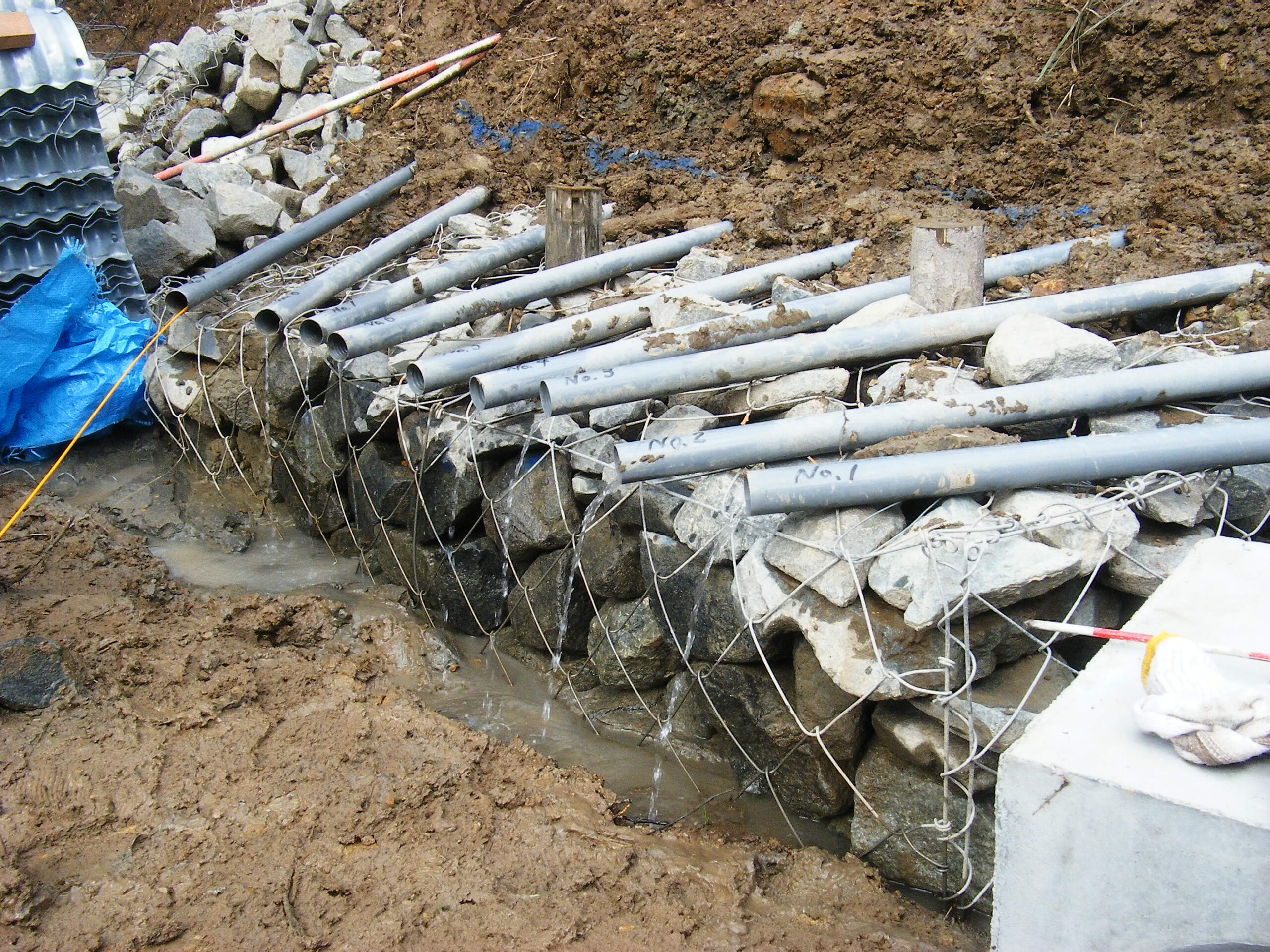 事業内容 SERVICE ホーム 事業内容 水抜きボーリング工 水抜きボーリング工 水抜きボーリング工とは、斜面を不安定化する地下水を排除することを目的とした工法です。湧水箇所付近にストレーナーの付いた保孔管を挿入し、排水していきます。 一覧へ戻る